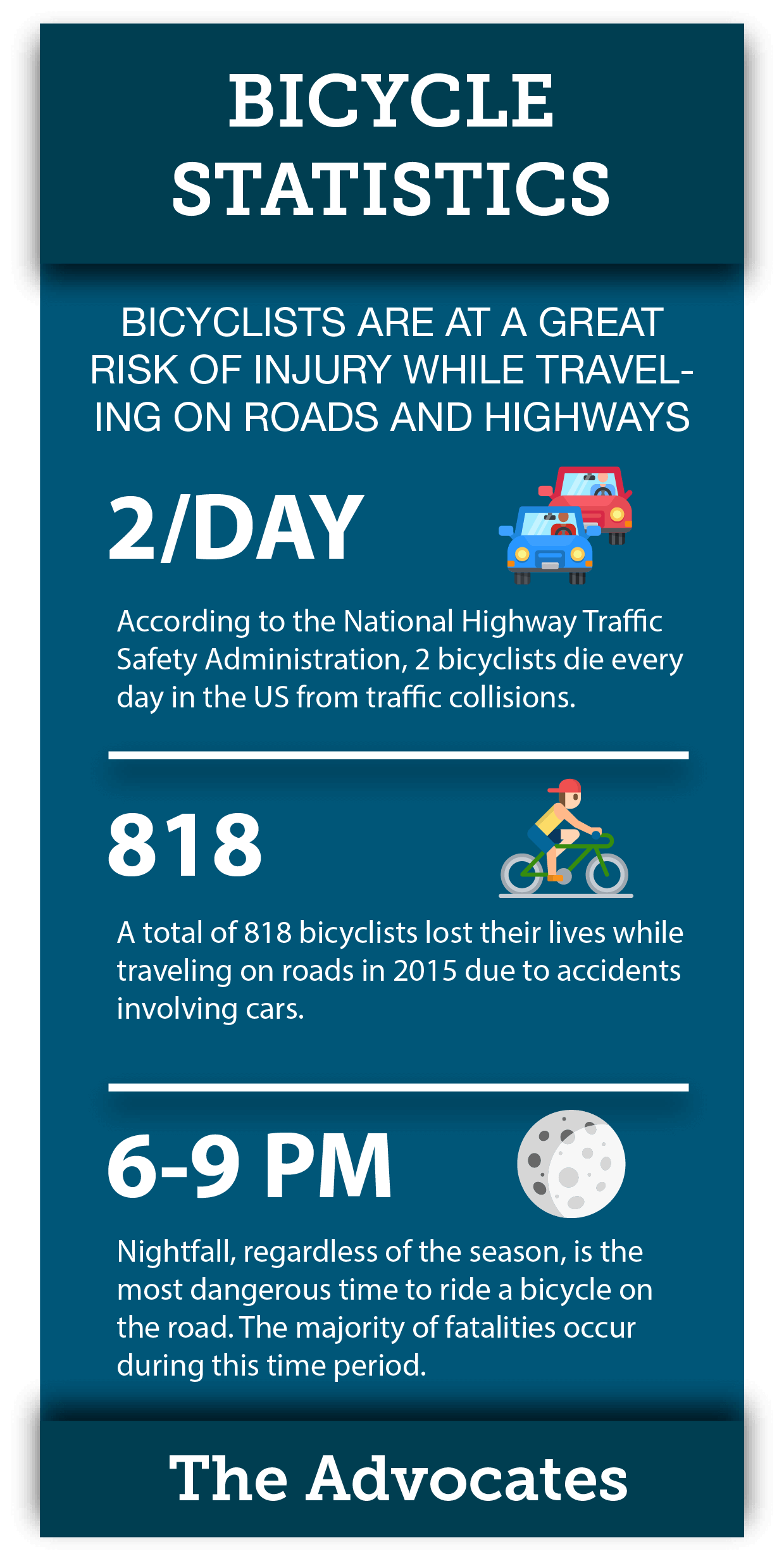 After being injured in a bicycle accident, an ordinary lawyer simply won’t do. You want the best bicycle accident attorney you can find. What you need is an Advocate. Unlike some other personal injury firms, we won’t quit if we’re unable to negotiate a fair settlement. The Advocates refuse to quit until the job is done. Our bicycle accident attorneys have helped thousands of accident victims get back on the road again.